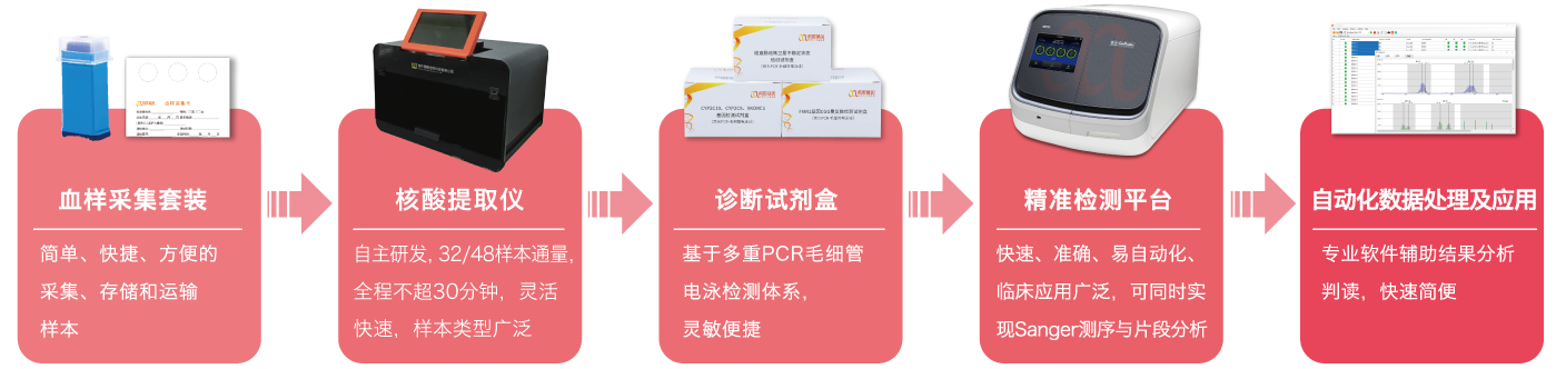 k8凯发基因基于毛细管电泳平台(一代测序金标准平台),在结直肠癌精准用药领域开发了一系列多重联检试剂盒,不仅可为结直肠癌患者的遗传风险、预后判断及化疗获益给予指导,同时还可为结直肠癌的免疫治疗、靶向治疗、化疗等各个治疗方式给予用药指导,另外完美搭配智阅基因分析仪及自主研发数据分析系统,可全方位灵活解决临床各方面需求,为临床给予整体解决方案。