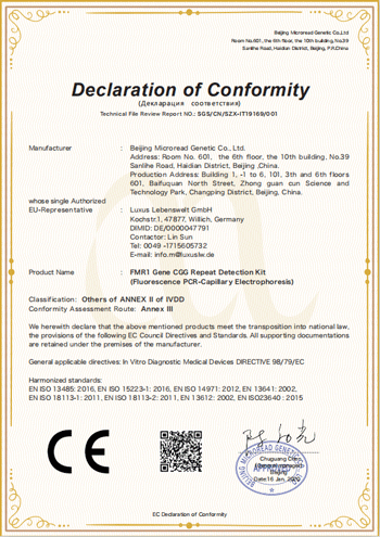 脆性X综合征(Fragile X Syndrome)是一种X连锁遗传病,是最常见的遗传性智力障碍疾病之一,发病率仅次于唐氏综合征。致病原因是X染色体上FMR1基因(CGG)n扩展突变,导致维持脑部正常神经传导的FMRP蛋白缺乏,患者会有严重的智力低下、发育迟缓、语言障碍和行为问题,包括多动症、自闭症、注意力不集中和伴有癫痫等症状。该试剂盒采用国际权威指南认可的三引物PCR技术,可准确计算出CGG重复数,快速准确区分不同基因型人群,对脆性X综合征患者确诊,满足临床检测的不同需求。