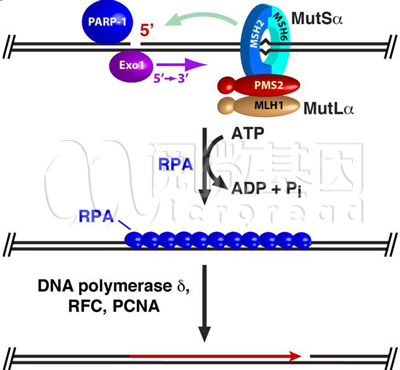 上述四种MMR蛋白是人体的碱基错配修复系统途径中的关键蛋白,一旦由于某种原因造成功能或表达缺失,MMR途径即被破坏,进而导致基因组中错误的大量积累。
