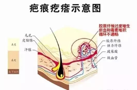 图1 疤痕疙瘩是创伤后胶原纤维过度增生的结果