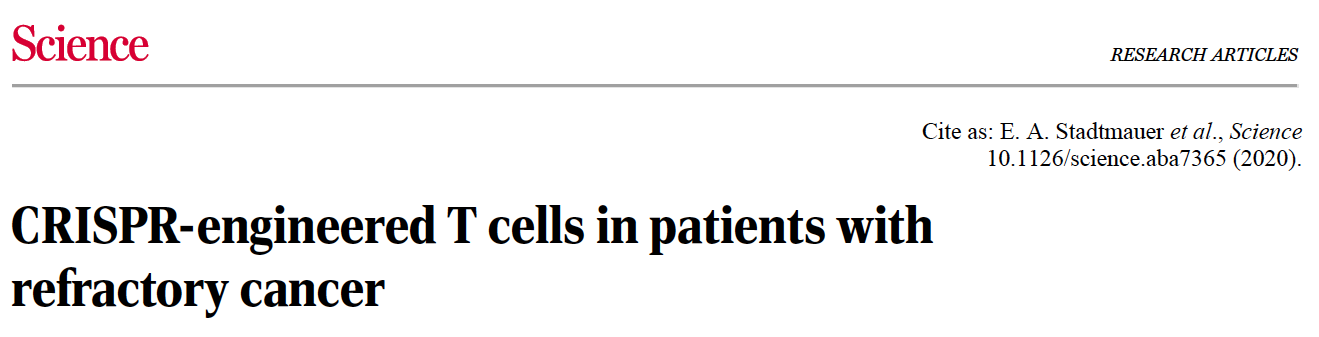 CRISPR-engineered T cells in patients with refractory cancer,Science,2020