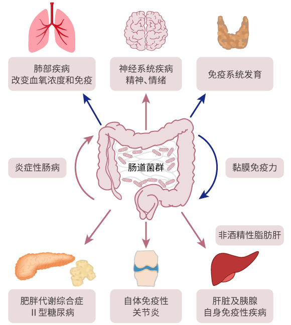 2013年“肠道菌群与人体健康关系的研究”已被列入Science十大科学进展中。肠道微生物作为数量庞大巨大、种类繁多的微小生命群体,对人类健康有着重要的指导和预警意义,是人体很多慢性疾病的晴雨表。大量研究表明肠道菌群与消化道类疾病(如肠易激综合征、炎症性肠病、结肠癌)、代谢类疾病(如肥胖和II型糖尿病、慢性肾病)、免疫性疾病(如类风湿关节炎、艾滋病、过敏性湿疹)以及一些精神疾病(如抑郁症、焦虑症、自闭症、老年痴呆)等各类疾病相关,已经成为人类健康管理和健康防控的新方向。