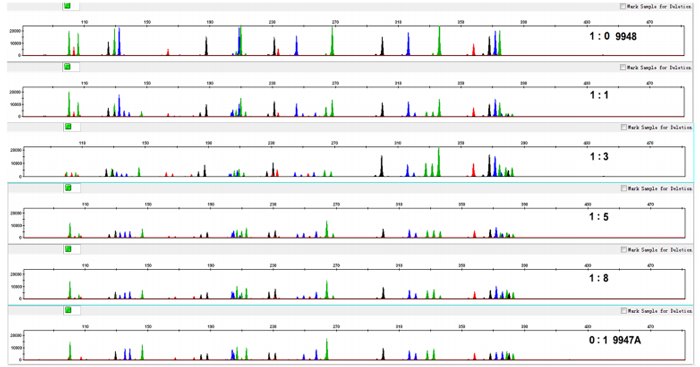 图2  不同比例混合样本电泳峰图