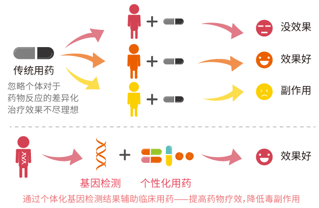 不同个体对于药物反应的差异性很大,影响因素包括年龄、并发症、营养状况、遗传背景、药物相互作用及环境等,其中遗传背景的影响尤为重要。药物进入人体内,经过吸收、转运、代谢、效应及清除的过程发挥作用,携带不同基因型的患者在上述药物作用过程中可能呈现反应的程度不同,表现为药物反应性的个体差异。