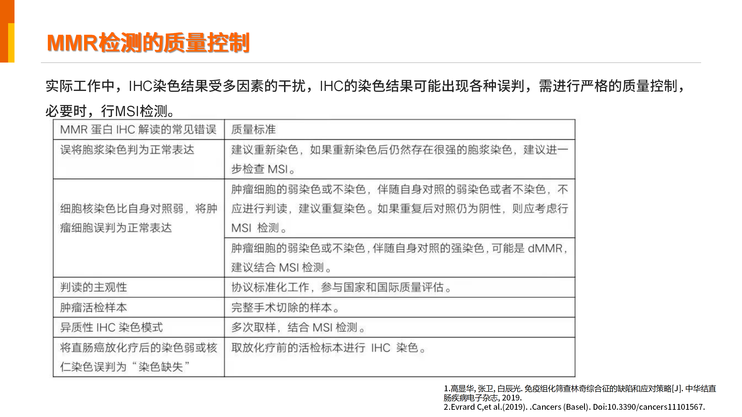 总体上,研究表明,约10%的CRC患者存在MSI-PCR和MMR-IHC检测结果不一致的情况,从而会对患者治疗选择产生影响。
