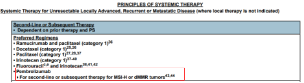 3.派姆单抗用于MSI-H或dMMR肿瘤的二线或后续治疗。