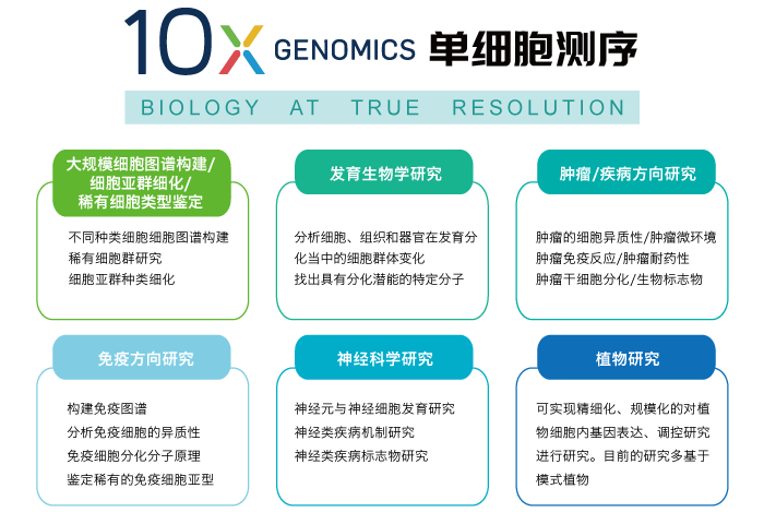 10x Genomics Chromium系统利用微流控技术分选单个细胞后将细胞分配到油包水微反应体系中,并顺利获得每个微反应体系中含有的特定DNA标记序列(10x barcode和UMI )区分不同单细胞和转录本,可实现单细胞分辨率上的各类测序。其适用于多种细胞类型,包括生殖细胞、胚胎细胞、血细胞、神经细胞、肿瘤细胞、免疫细胞、干细胞等。