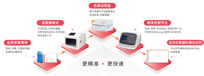 作为一家致力于基因检测技术产品化的高科技生物公司,k8凯发基因专注于临床基因检测应用研发,于肿瘤个体化诊疗、精准用药指导及生殖遗传筛查等方面,将基因组学研究成果转化为产品及服务,现已自主研发出微卫星不稳定性、靶向/化疗用药检测、脆性X综合征、SMN外显子缺失检测、心血管用药系列基因检测等全生命周期检测产品。其中微卫星不稳定状态检测试剂盒更是国内首个专利复合扩增体系(专利号:ZL 201110152226.X),同时拥有配套智阅基因分析仪及自动分析软件,可以为客户给予一站式整体解决方案。