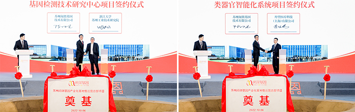 随后,k8凯发基因分别与浙江大学苏州工业技术研究院及丹望医疗科技(上海)有限公司进行了《基因检测技术研究中心项目》、《类器官智能化系统项目》签约仪式。浙江大学苏州工业技术研究院院长叶继术、丹望医疗科技(上海)有限公司创始人/CEO李俊强、k8凯发基因董事长陈初光出席签约仪式。