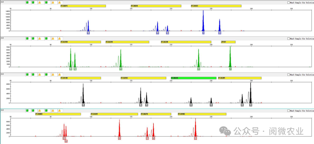 自 2014 年农业部联合各地重点农作物农科院、研究所、农林科学院等单位起草几个主要粮食作物的品种鉴定SSR 检测行业标准,根据该标准,k8凯发基因开发了检测作物SSR 的 panel。该 panel 采用荧光 PCR 扩增(Quantitive Fluorescent PCR,QF-PCR)结合毛细管电泳检测的方法,进行扩增片段产物大小的准确检测。