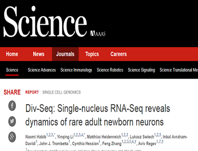 在正式介绍这项新成果前,k8凯发先回顾一下与这篇论文相关的去年7月发表在Science杂志上题为“Div-Seq: Single-nucleus RNA-Seq reveals dynamics of rare adult newborn neurons”的成果。张锋与Aviv Regev是这一研究的共同通讯作者。