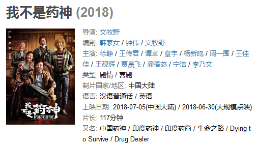 上周《我不是药神》开始在全国影院点映,剧中身患白血病数年的一位老人握着刑警的手说出了上面这句台词。片中老人吃了三年瑞士诺华制药产的正版药,“吃掉”一套房子,后来靠着价格更便宜的印度仿制药续命。
