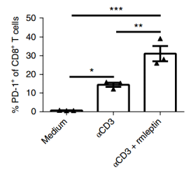 肥胖对T细胞的打压无疑也帮助肿瘤作恶。研究者发现Cpt1a基因在癌细胞和T细胞中表达都有上调,这个基因与脂肪酸代谢有关,之前有研究发现它是导致T细胞耗竭的代谢因素之一。另外,肥胖带来的一些激素水平的变化,也能够影响T细胞的功能。