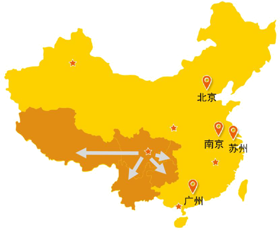 ■ 西南地区服务中心创建,服务范围覆盖云贵川藏青甘宁等地区。