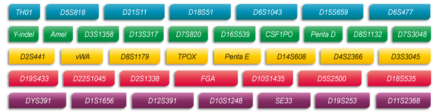 本试剂利用成熟的6色荧光标记技术,对36个常染色体基因座、1个Y染色体基因座和1个性别位点Amelogenin以及1个Y-indel进行复合扩增。完全满足最新的全国公安机关打拐DNA数据库基因座要求。