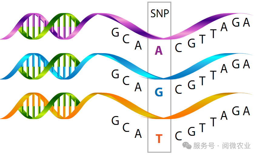 单核苷酸多态性(Single Nucleotide Polymorphism, SNP)用于指示基因组中单个核苷酸的变异。SNP标记的特点是双等位基因(biallelic)且在许多代中保持稳定。此外,SNP标记适用于自动化、高通量,因此在分子植物育种应用中非常受欢迎和方便。