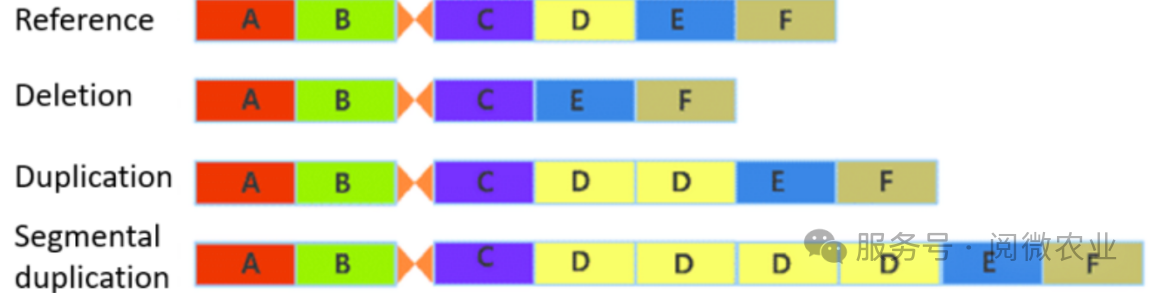 结构变异(Structure Variantions,简称SV)是造成物种表型差异的一个重要原因,且与各类疾病,特别是癌症的发生、开展紧密相关,因此研究结构变异非常重要。基因组结构变异通常是指长度大于1Kb的基因组序列变异,包括多种不同的类型:插入(insertion)、缺失(deletion)、反转(inversion)、异位(trans)、拷贝数变异(copy number variation,CNV或者duplication)